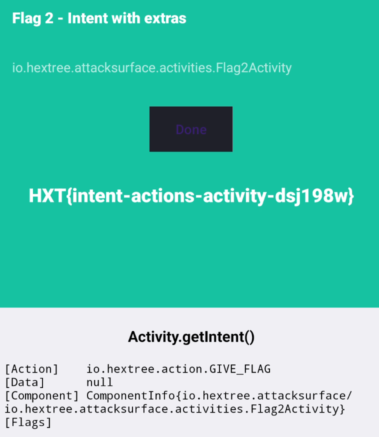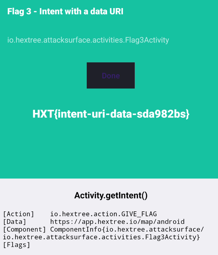 adb shell "am start -n io.hextree.attacksurface/io.hextree.attacksurface.webviews.Flag38WebViewsActivity -e URL \"javascript:hextree.success(true)\""